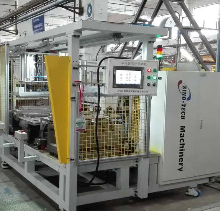 Semi-automatic core assembling machine for condenser core, radiator core, interc